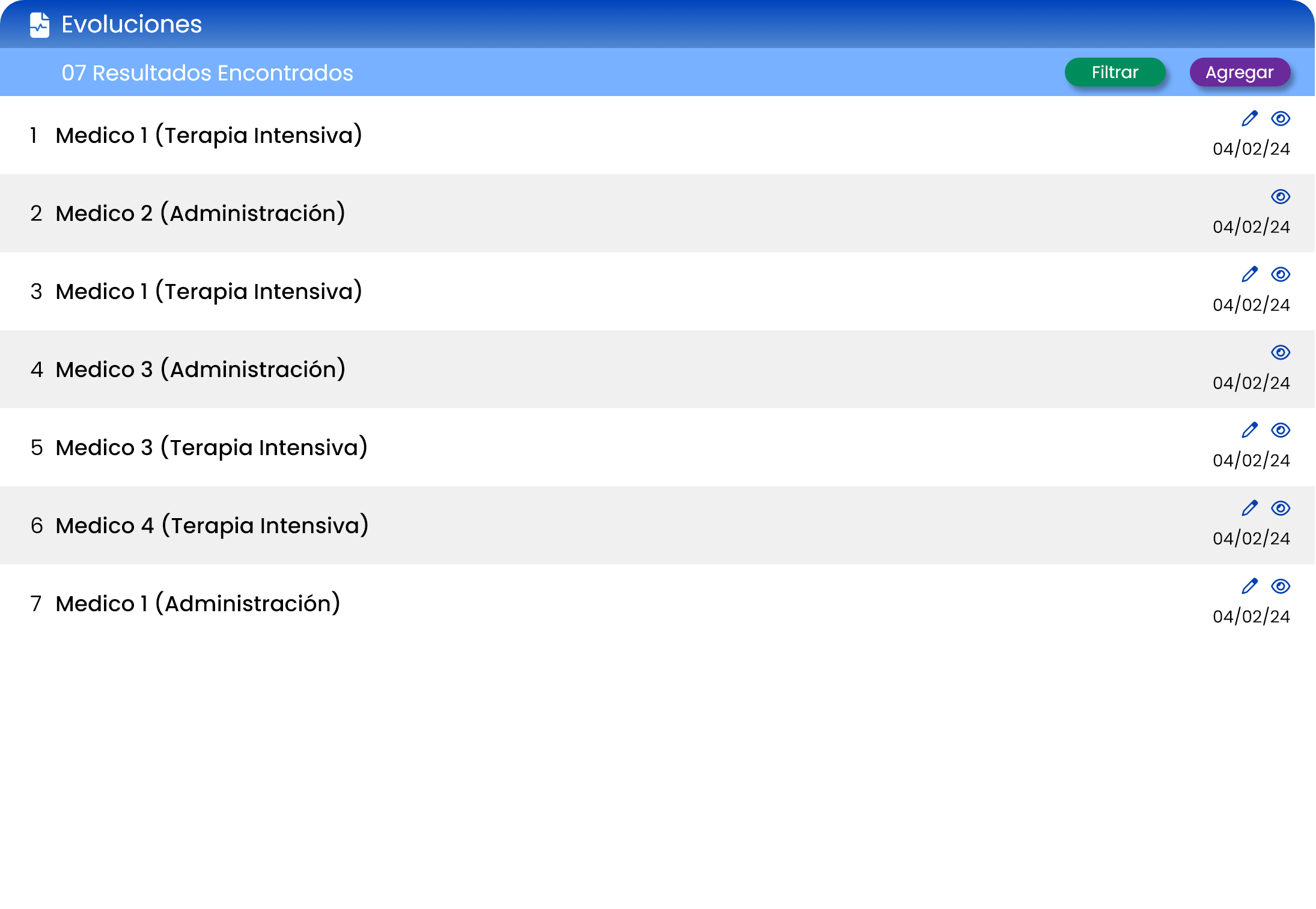 • Estadísticas de pacientes, patologías, medicamentos y estudios.